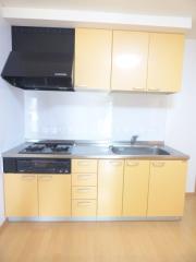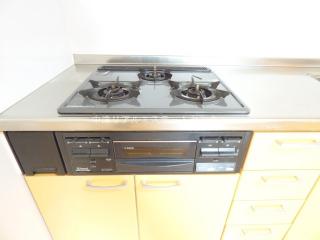 明るい室内、TVモニターホン・3口ガスコンロ付き・温水洗浄便座。