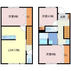 1階洋室2部屋、2階LDK・洋室1部屋のメゾネットタイプ物件♪